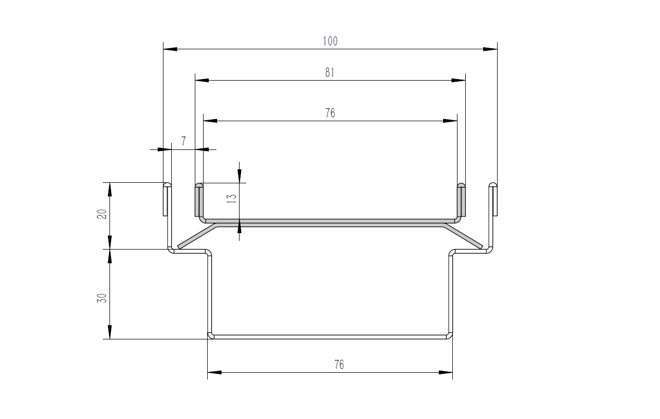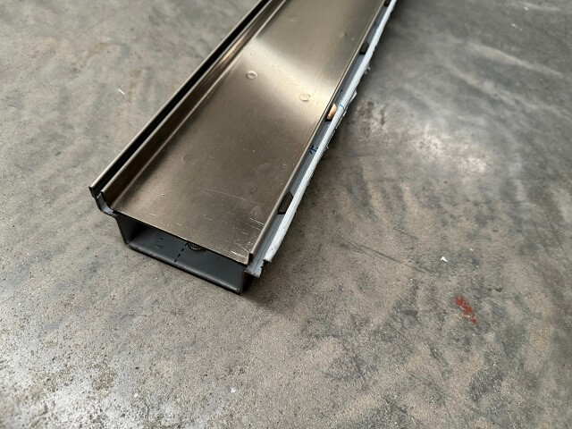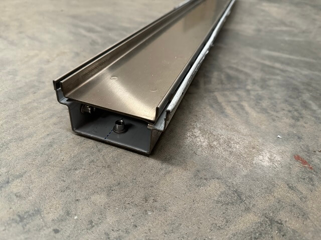 Channel Size: 100 mm wide. 50 mm deep, 1.2 mm thick stainless steel