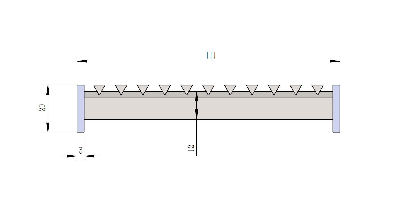 5 mm profile with 5 mm gaps , 12 mm high support bar